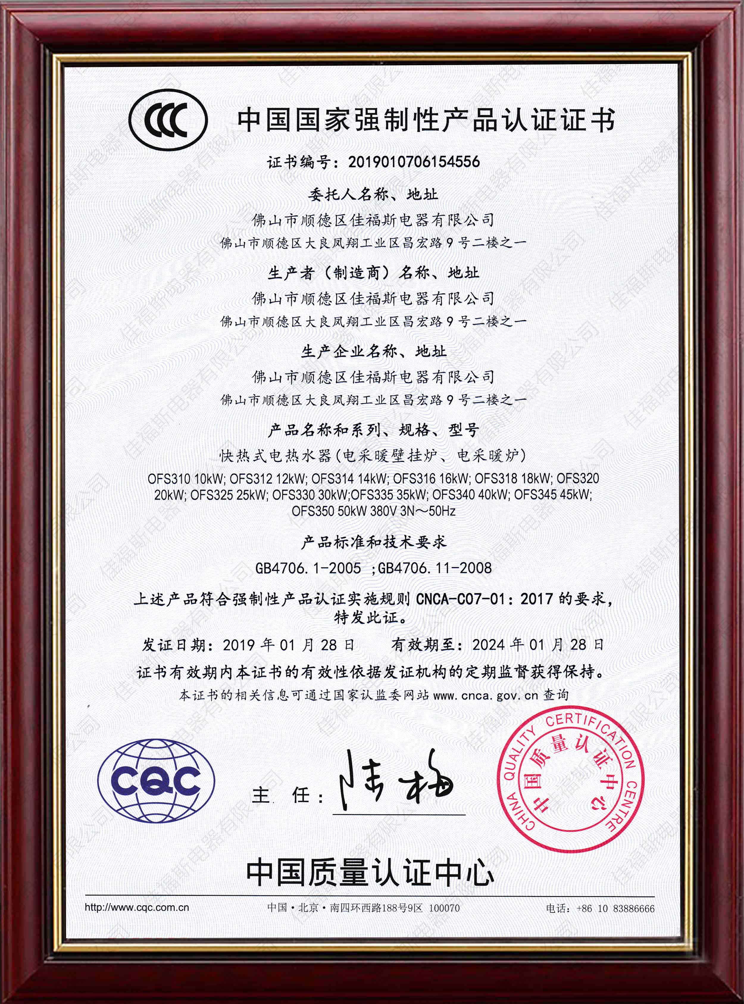 佛山市順德區佳福斯電器有限公司,坐落在家電之都 ——順德,是一家集科研、 新產品開發的大型家電生產基地, 專門從事研發、生產世 界一流的采暖設備、熱水設備等供暖供生活熱水的電器產品,成功開發了四大類一百多 個品種規格的產品, 廣泛應用于家庭、學校、機關、部隊、醫院、賓館、工廠宿舍等。 其產品安全、高效、方便、節能、環保,深受國內外廣大用戶的喜愛。 佳福斯以創新科技為目標,本公司投入巨資, 耗時多年,終于達到 了改寫電加熱技術的新篇章,它的安全性和耐用性是現在全世界同類 產品無可比擬的,佳福斯擁有大規模的生產工廠,專業生產電加熱的 核心部件加熱體, OEM貼牌以及品牌機, 它通過強制性認證, 結構獲得專利, 通過電加熱技術的改寫以及新思路,佳福斯將引 領供暖供熱水設備進入新潮流,為人類共享快樂,真正帶給人們溫暖。